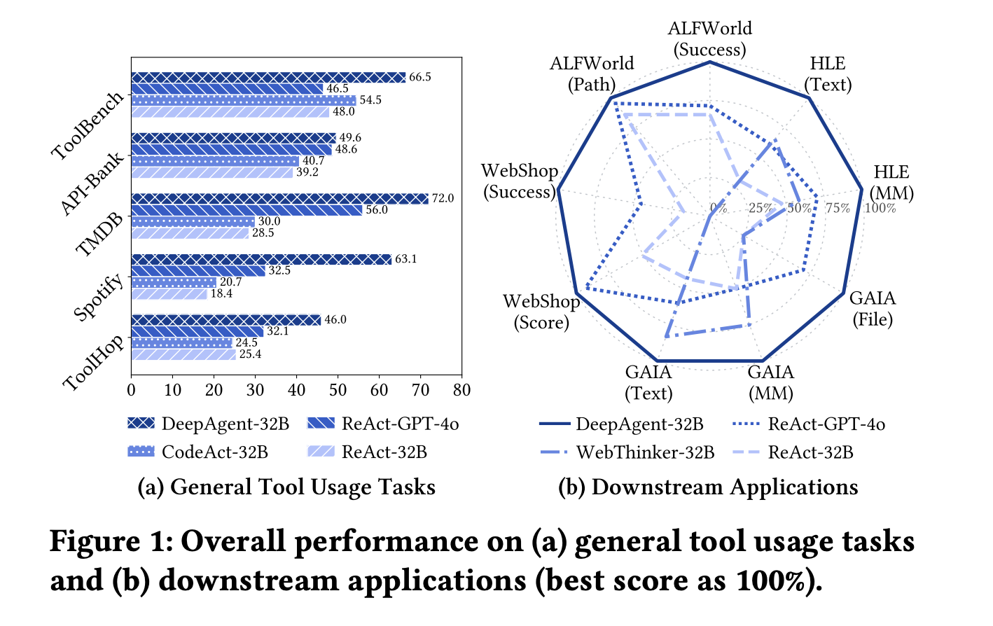 DeepAgent is a practical step toward agent architectures that do not depend on fixed tool prompts, because it unifies autonomous thinking, dense tool retrieval over 16,000 plus RapidAPIs and 3,900 plus ToolHop tools, structured tool calling, and memory folding in one loop. The use of LLM simulated APIs in ToolPO is an engineering choice, but it solves the latency and instability problem that hurts prior tool agents. The evaluation shows consistent 32B level gains in both labeled tool and open set settings, not isolated peaks. This release makes large toolspaces actually usable for LLM agents. Overall, DeepAgent confirms that end to end tool agents with memory and RL are emerging as the default pattern.