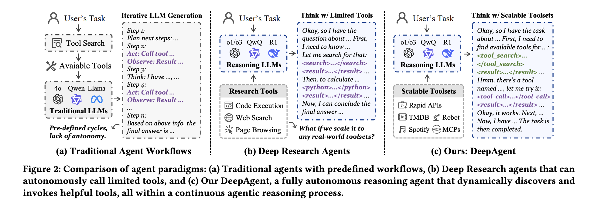 Most agent frameworks still run a predefined Reason, Act, Observe loop, so the agent can only use the tools that are injected in the prompt. This works for small tasks, but it fails when the toolset is large, when the task is long, and when the agent must change strategy in the middle of reasoning. The team from Renmin University of China and Xiaohongshu proposes DeepAgent as an end to end deep reasoning agent that keeps all of this inside one coherent reasoning process.