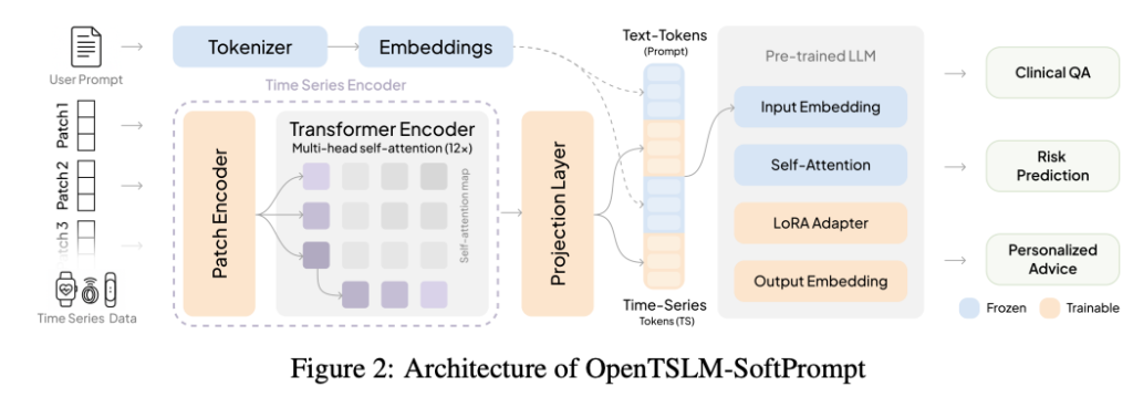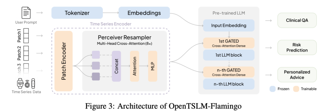OpenTSLM integrates time series as a native modality directly into pretrained LLMs (such as Llama and Gemma), enabling natural language querying and reasoning over complex health data.