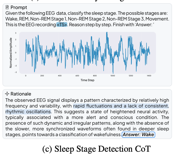 A crucial element of Medical AI is trust. Unlike traditional models that output a single classification, OpenTSLM generates human-readable rationales (Chain-of-Thought), explaining its predictions. This AI transparency is vital for clinical settings.